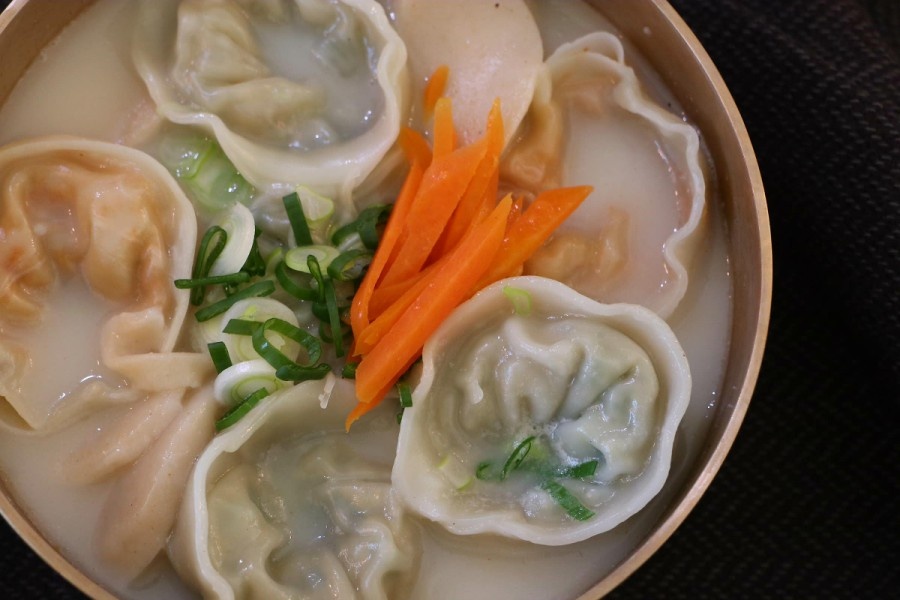 떡 넣고 끓이기: 만두가 어느 정도 익으면 떡국 떡을 넣습니다. 떡이 말랑말랑해지고 만두가 완전히 익을 때까지 중불에서 5분 정도 더 끓여줍니다. 떡이 퍼지지 않도록 주의하세요.