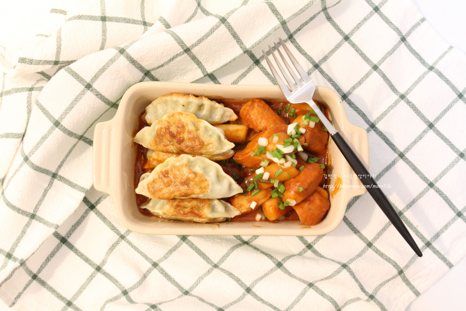 떡과 어묵이 양념을 머금고 부드럽게 익을 때까지 중약불에서 끓여주세요. 떡이 말랑말랑해지고 국물이 자작해지면 완성입니다. 마지막으로 취향에 따라 송송 썬 대파를 넣고 한소끔 더 끓여주세요. 저는 바삭하게 구운 군만두도 곁들였습니다. 떡볶이 국물에 만두를 찍어 먹으면 정말 별미랍니다!