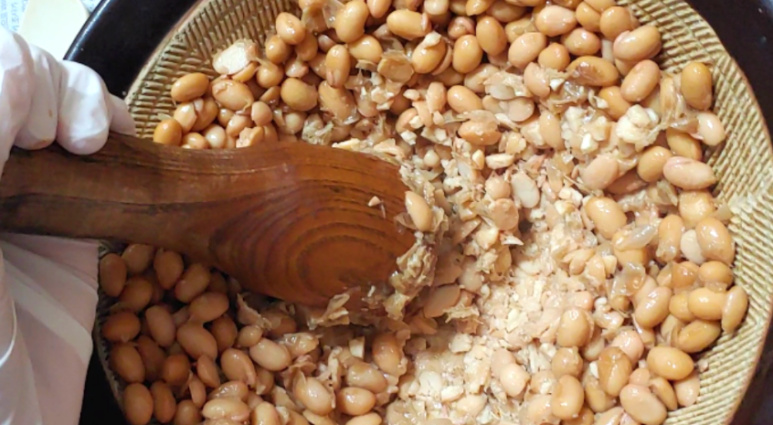 콩이 잘 익었는지 확인하는 방법은 간단합니다. 익은 콩알 하나를 손가락으로 문질러 보았을 때, 쉽게 으깨지고 뭉개진다면 잘 익은 것입니다. 콩의 식감이 부드러워야 된장과 잘 섞입니다.