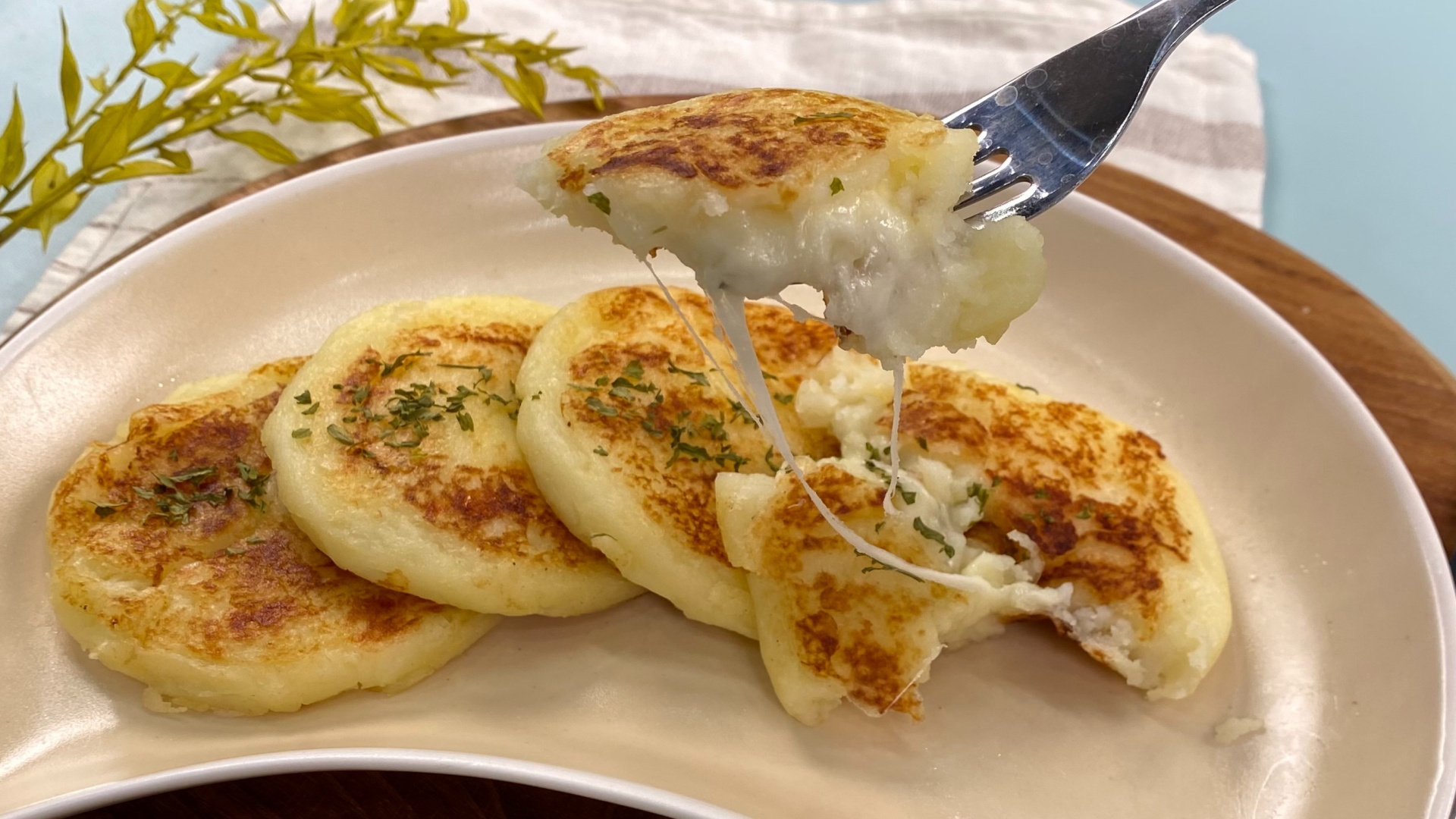 부드러운 감자 반죽 속에 쭉 늘어나는 피자치즈를 넣어 구워낸 쫀득하고 고소한 감자치즈호떡입니다. 만들기 쉽고 아이들 간식으로 정말 좋은 메뉴랍니다. 겉은 노릇하게, 속은 치즈로 가득 차 특별한 맛을 선사해요. 든든한 간식으로 꼭 한번 만들어 보세요!