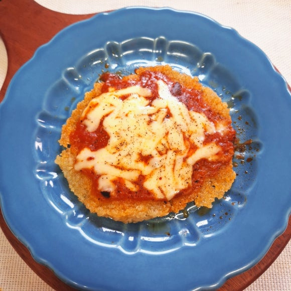 바삭하게 잘 부쳐진 감자전 위에 먹고 싶은 만큼 토마토소스를 펼쳐 바르고, 그 위에 모짜렐라 치즈를 듬뿍 올려주세요. 이제 전자레인지에 넣고 치즈가 녹을 때까지 1~2분 정도 돌려주면, 쫀득하고 맛있는 감자전피자 완성입니다! 취향에 따라 파슬리 가루 등을 뿌려 장식해도 좋습니다.