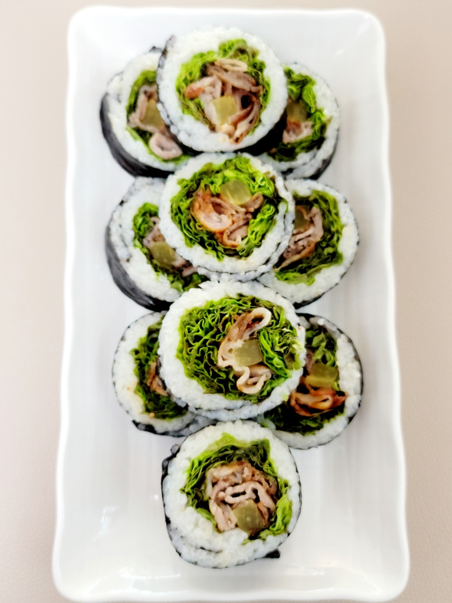 이렇게 해서 맛있는 대패삼겹살 김밥이 완성되었습니다!