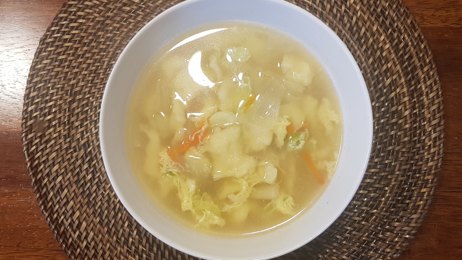 계란물을 넣고 한소끔 더 끓어오르면 불을 꺼주세요. 계란이 몽글몽글 익으면서 국물이 더욱 부드럽고 고소해진답니다. 따뜻하고 맛있는 우리 집표 수제비, 맛있게 드세요!