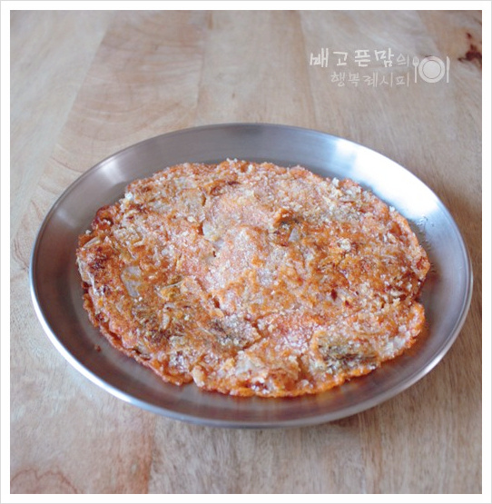 빵가루를 입혀 노릇하게 익힌 면이 완성되었습니다. 이젠 가장자리뿐만 아니라 김치전 전체가 놀라울 정도로 바삭하게 잘 부쳐졌어요. 따뜻할 때 맛있게 즐기세요!