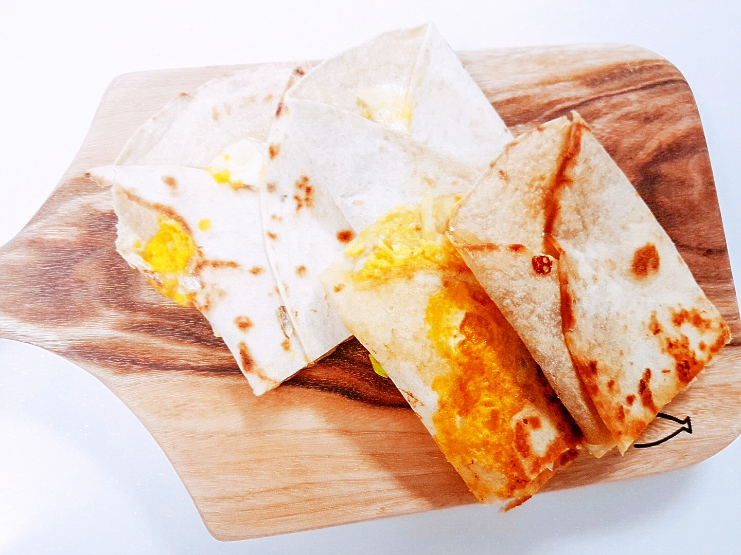 팬을 중약불로 조절하여 계란이 완전히 익고 치즈가 녹을 때까지 기다립니다. 그런 다음, 팬을 살짝 눌러주면서 또띠아 양면이 골고루 바삭하게 익도록 앞뒤로 뒤집어가며 구워주세요. 마치 또띠아가 재료들을 샌드위치처럼 단단히 감싸 안는다는 느낌으로 구우면 완성입니다. 따뜻할 때 바로 드세요!