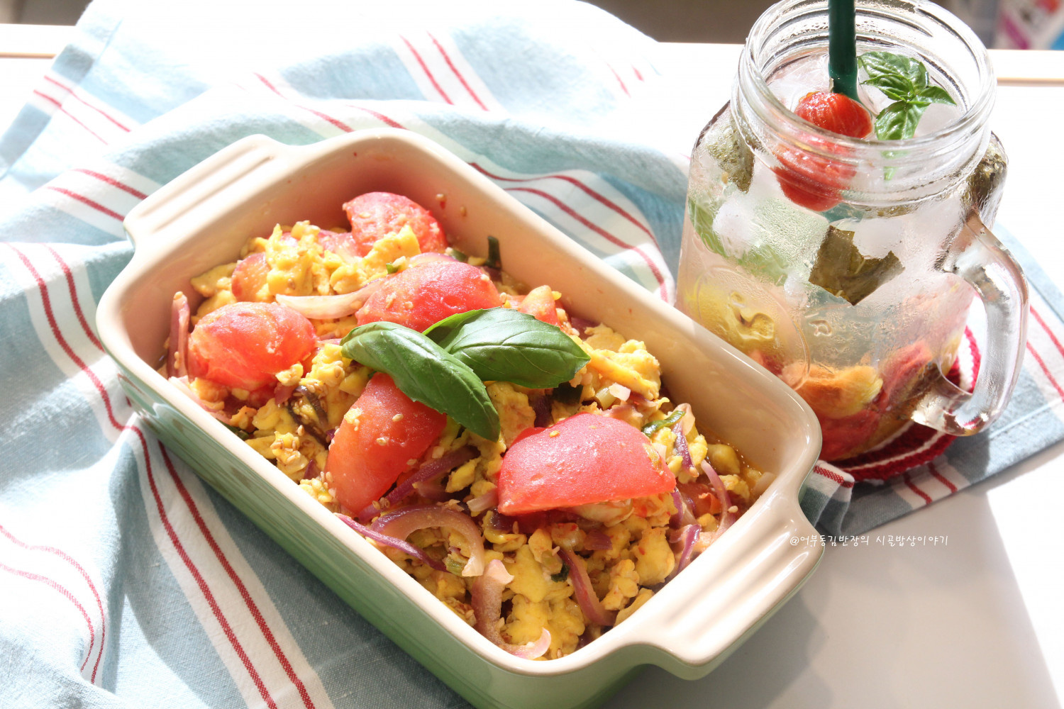 싱그러운 여름 햇토마토가 가장 맛있을 때, 향긋한 바질 향까지 더해 근사한 브런치 메뉴를 만들어 보세요. 10분이면 뚝딱 완성되는 초간단 토마토 달걀 볶음은 보기에도 예쁘고 맛도 좋아 남녀노소 누구나 즐길 수 있습니다. 여기에 시원한 토마토 바질 에이드 한 잔을 곁들이면 완벽한 브런치 타임이 완성됩니다. 간단하면서도 특별한 맛을 선사하는 토마토 달걀 볶음, 지금 바로 만들어 보세요!