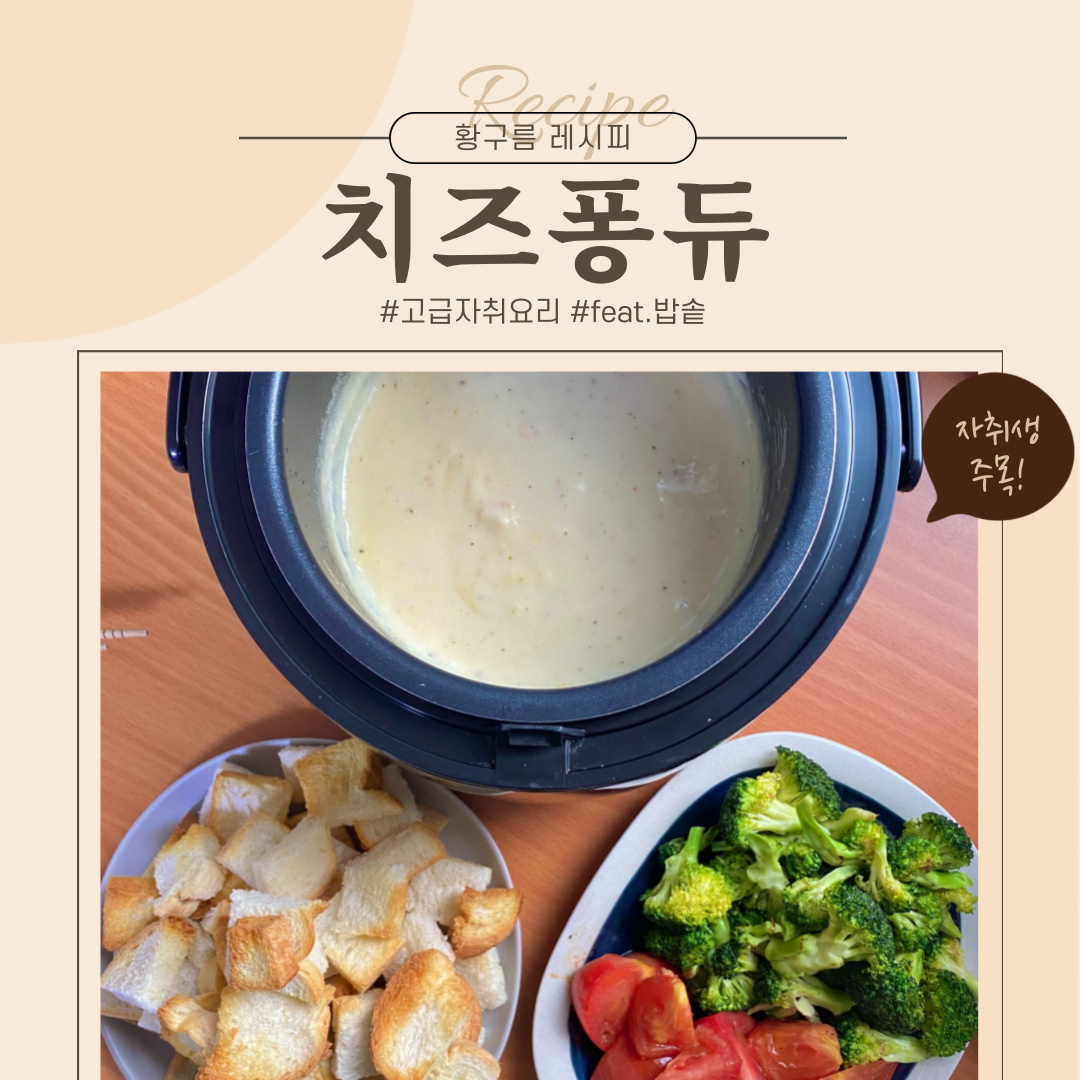 일주일간 열심히 달려온 나를 위한 작은 사치, 혹은 집들이 손님을 위한 특별한 요리를 하고 싶으신가요? 워머도 뚝배기도 없는 자취방에서도 걱정 마세요! 밥솥만 있다면 누구나 10분 안에 근사하고 맛있는 치즈 퐁듀를 완성할 수 있답니다. 와인과 곁들이면 더욱 분위기 있는 특별한 메뉴를 지금 바로 만들어 보세요!