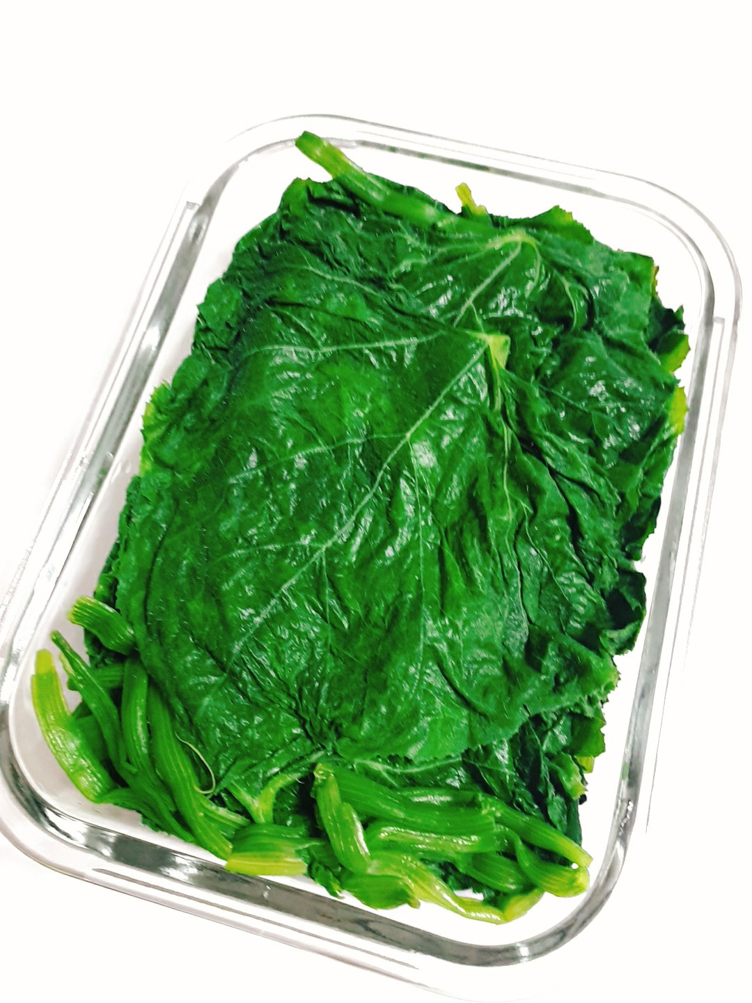 데친 호박잎은 바로 찬물로 옮겨 2번 정도 가볍게 흔들어 씻어줍니다. 찬물에 헹궈주면 열기가 빠지면서 더욱 아삭하고 신선한 식감을 유지할 수 있어요. 헹군 후에는 손으로 물기를 꼭 짜내야 나중에 밥과 함께 먹을 때 물기가 생기지 않아요.