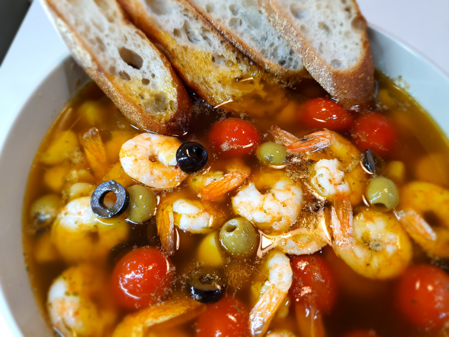 따뜻하게 구운 바게트 빵을 곁들여 감바스 오일에 듬뿍 찍어 드시면 정말 맛있어요! 어떠신가요, 정말 간단하죠? 집에서도 근사한 스페인 요리를 즐겨보세요. 맛있게 드세요!