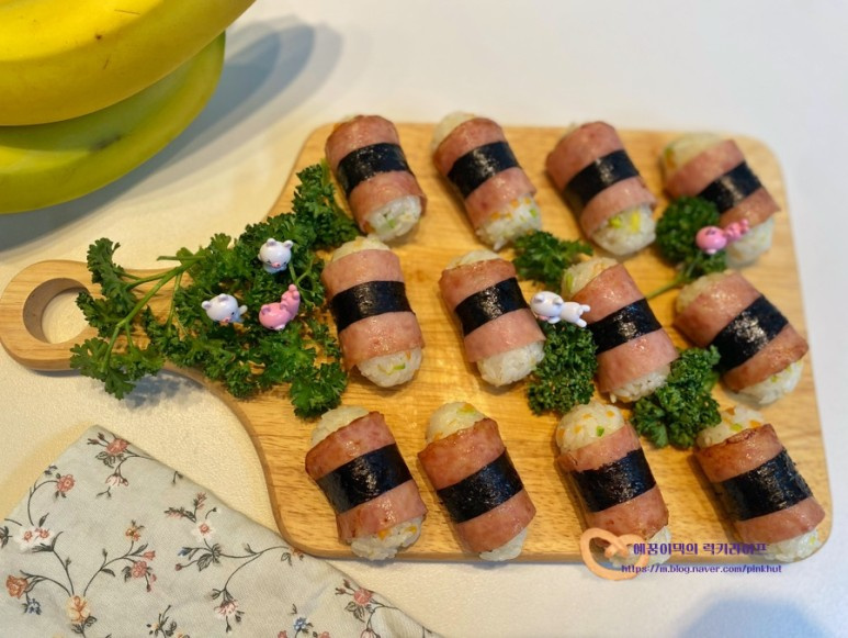 특별한 날을 위한 앙증맞은 슬라이스 햄 김 주먹밥