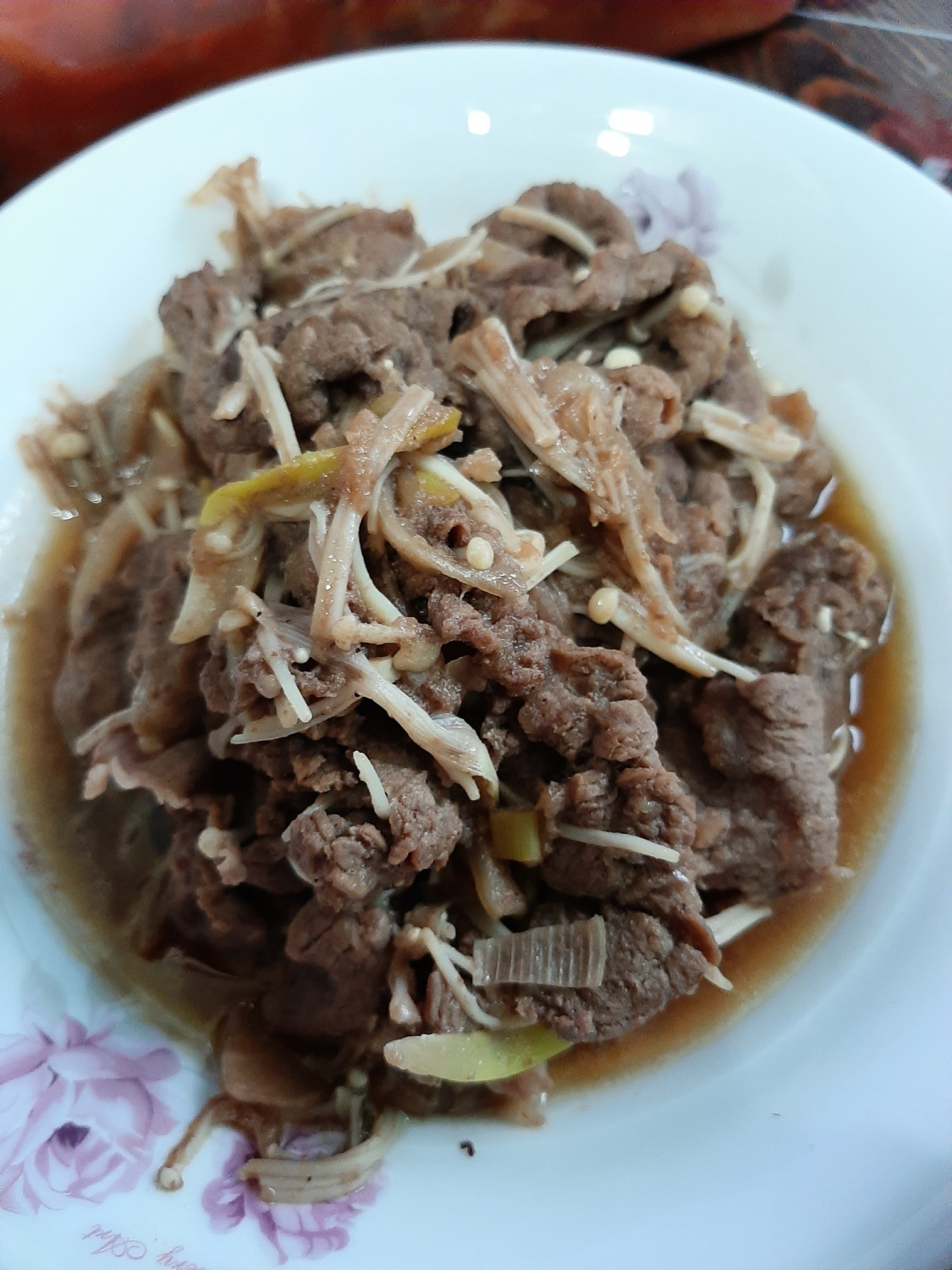 팽이버섯은 밑동을 잘라내고 흐트러뜨린 후, 볶고 있는 소불고기에 넣어 주세요.
