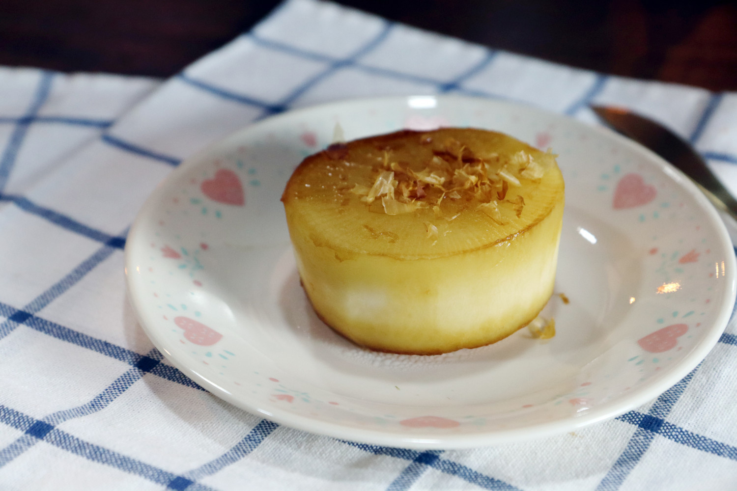 마지막으로, 완성된 무 스테이크 위에 가쓰오부시 한 꼬집을 솔솔 뿌려주세요. 춤추는 듯 움직이는 가쓰오부시가 보는 즐거움을 더하고, 은은한 훈연향이 풍미를 한층 더 끌어올려 줄 거예요. 맛있게 드세요!