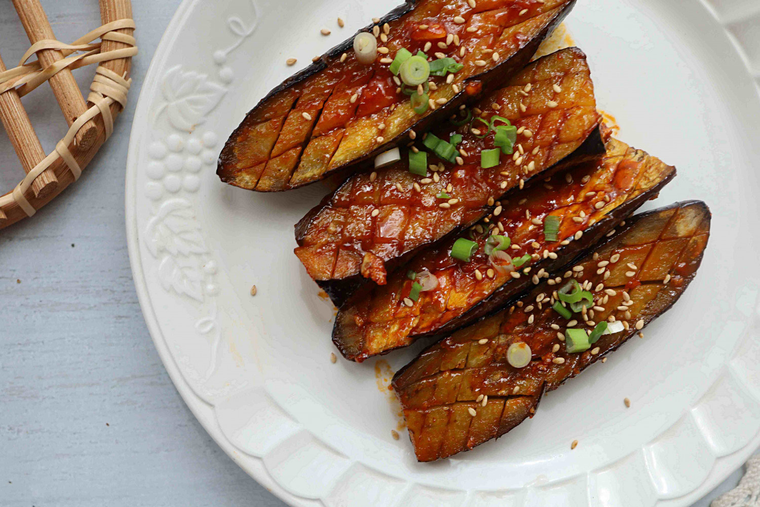 양념을 바른 가지를 접시에 보기 좋게 담고, 마지막으로 통깨를 솔솔 뿌리고 파를 송송 썰어 올려주면 맛있는 가지 스테이크 완성입니다! 따뜻할 때 바로 드시면 촉촉하고 짭짤달콤한 맛을 제대로 즐기실 수 있을 거예요.