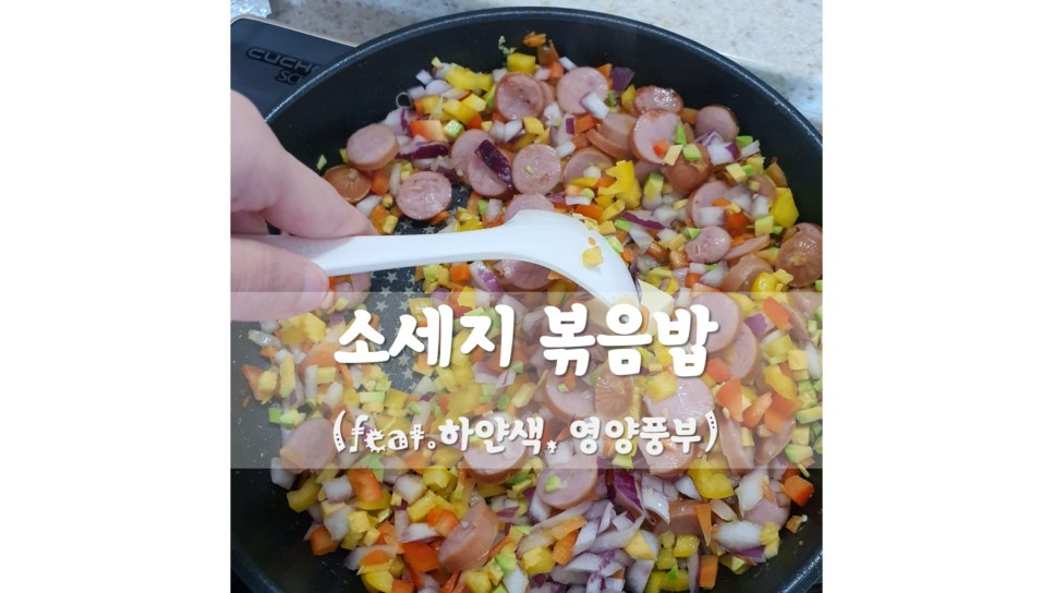 소시지가 노릇하게 익어가면서 버터 향이 솔솔 올라오는 것이 느껴지시죠? 이 향이 볶음밥의 풍미를 한층 끌어올려 줄 거예요.