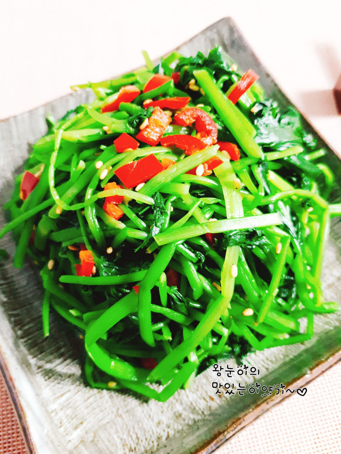 향긋한 참나물무침이 완성되었습니다! 드시기 전에 간을 보시고, 싱겁다면 맛소금을 조금 더 추가하거나 부족한 간을 맞춰주시면 됩니다. 입맛에 맞게 조절해서 즐기세요.