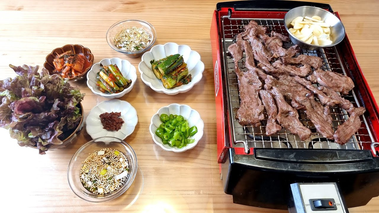 고기를 굽기 전에 곁들여 먹을 소스를 준비합니다. 간장 베이스에 식초, 와사비 등을 섞어 새콤달콤한 소스를 만들거나, 간편하게 시판용 소스를 활용해도 좋습니다. 취향에 따라 쌈무나 쌈장 등을 함께 준비하면 더욱 풍성하게 즐길 수 있습니다.