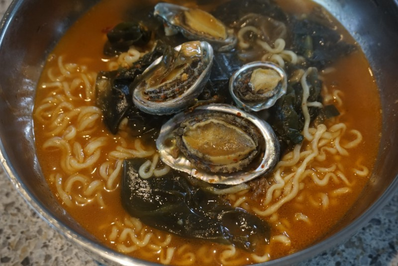 Once the noodles are cooked, turn off the heat and prepare to serve. Your Abalone Seaweed Ramen, with its delightful combination of chewy abalone, tender seaweed, and spicy broth, is ready!