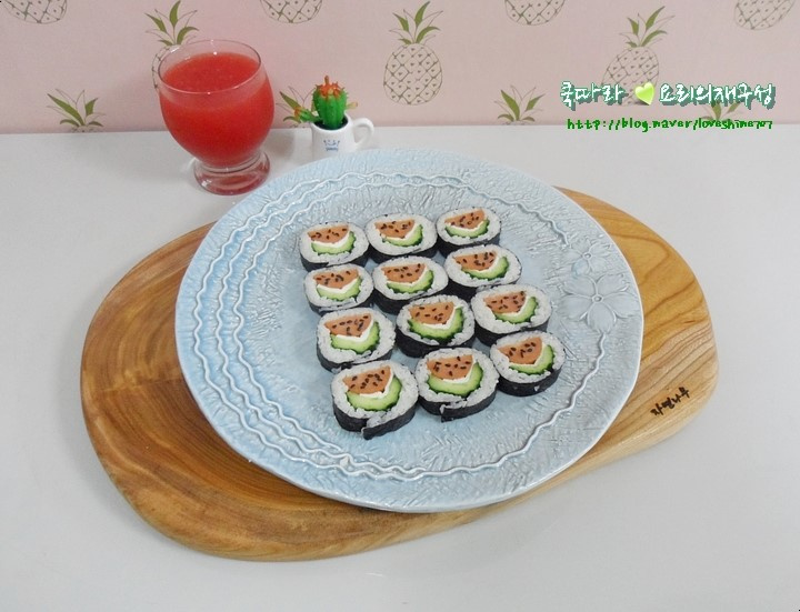 This is a recipe for cute watermelon kimbap. (Reference: @6870319)