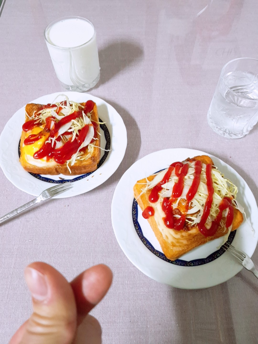 Place the delicious toast on a serving plate. Top generously with the fresh shredded cabbage salad. Finish with a drizzle of ketchup, and your flavorful Salad Toast is ready to be enjoyed!