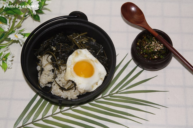 Enjoy a unique and flavorful rice dish made with fragrant dried chwinamul. This chwinamul rice is a special treat that fills your palate with the fresh aroma of spring.