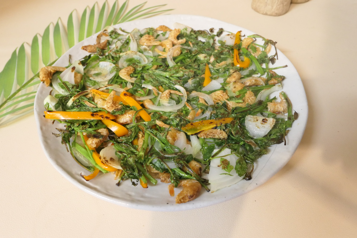 Fragrant and Delicious Water Parsley and Dried Shrimp Pancake