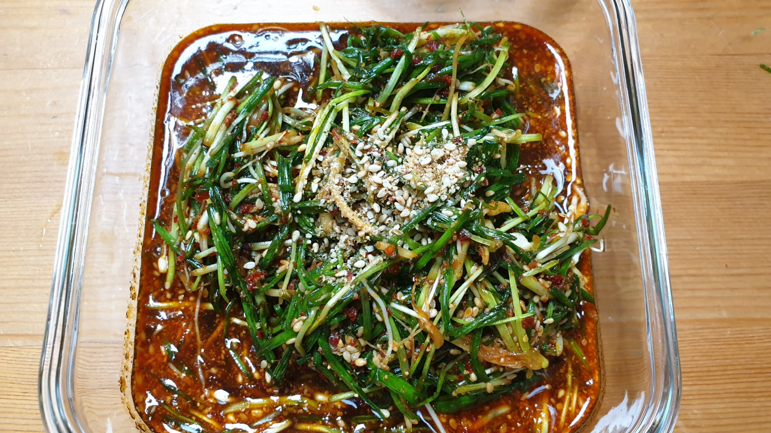 Voila! Your aromatic wild garlic soy sauce dip is ready. It’s delicious right away, but for an even deeper flavor, chill it in the refrigerator for a while to allow the flavors to meld. Enjoy it with your festive Korean dishes!