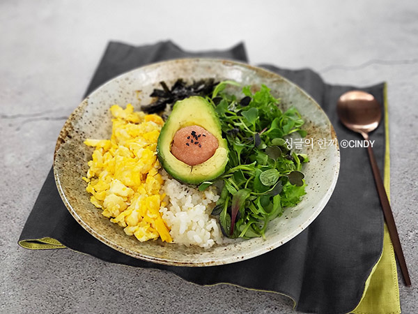 I tend to buy whatever ingredients catch my eye, and lately, avocados have been really appealing. So, I decided to make avocado and pollack roe bibimbap, a dish that’s already quite popular! I’ve seen many versions online with sunny-side-up eggs, but I personally prefer scrambled eggs, so I went with that. This recipe is a delightful way to enjoy the creamy texture of avocado paired with the savory, slightly salty pollack roe and fluffy scrambled eggs.
