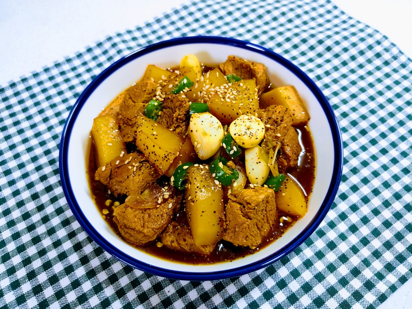 Your sweet and savory braised pork tenderloin with kohlrabi is ready! The crisp texture of the kohlrabi combined with the tender, mild flavor of the pork makes this an absolutely perfect side dish for rice.