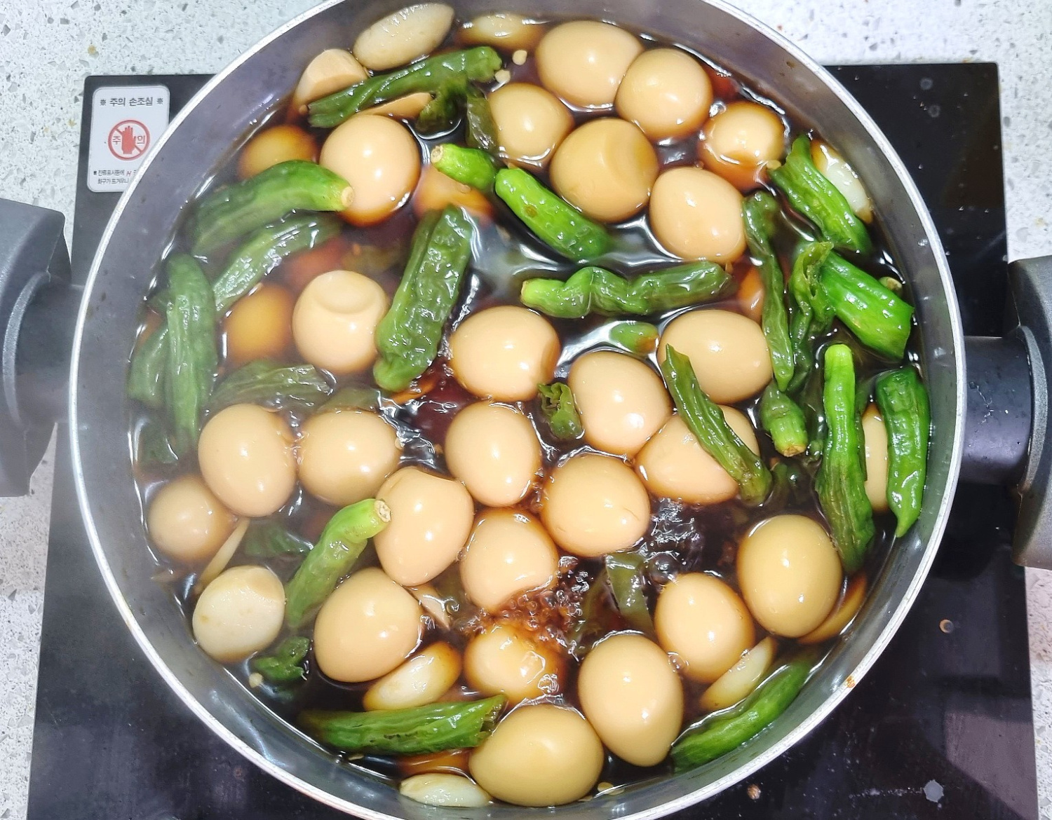 A Hearty and Delicious Braised Quail Egg and Korean Green Pepper Dish to Keep in Your Fridge