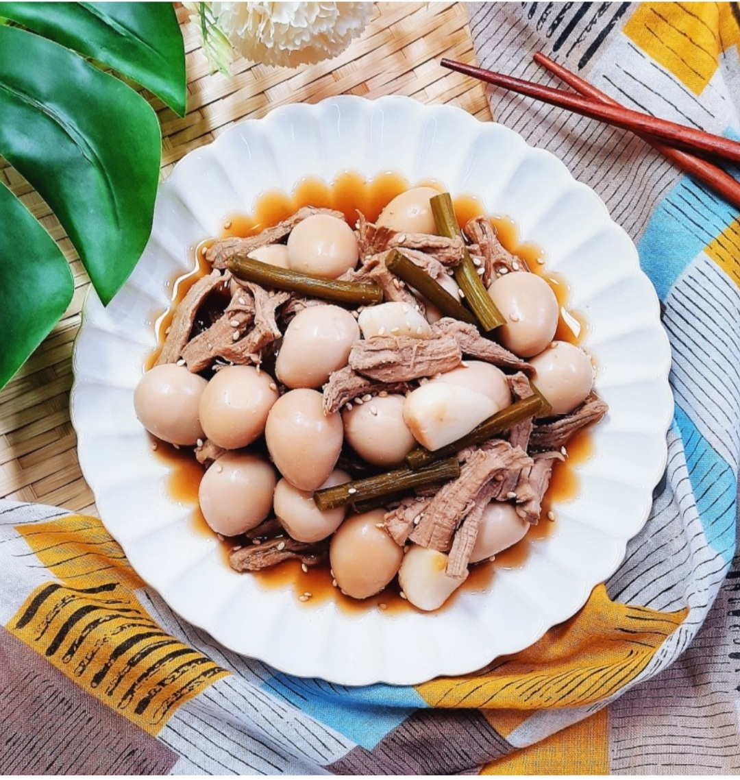Your delicious Braised Quail Eggs with Pork Tenderloin, packed with pork, quail eggs, garlic, and scapes, is now complete! Making a generous batch means you’ll always have a satisfying side dish ready. The moist quail eggs, infused with soy sauce, and the chewy pork tenderloin create an irresistible combination. This is a side dish that’s hard to resist, even when you have a main course! We hope you try making this delightful Pork Tenderloin Braised Quail Eggs. Your whole family will surely enjoy it!