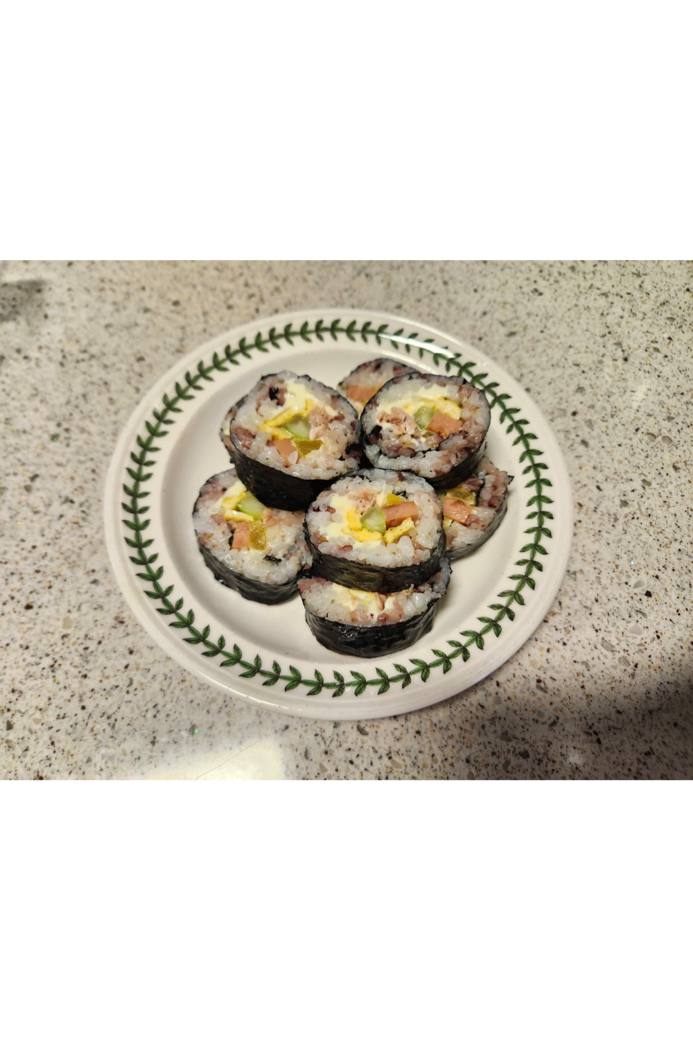 Slice the gimbap into bite-sized pieces, and your delicious Cheesy Tuna Spam Gimbap is complete! Don’t worry if the shape isn’t perfectly neat; homemade gimbap always tastes amazing. It’s perfect for a special occasion or a simple meal.