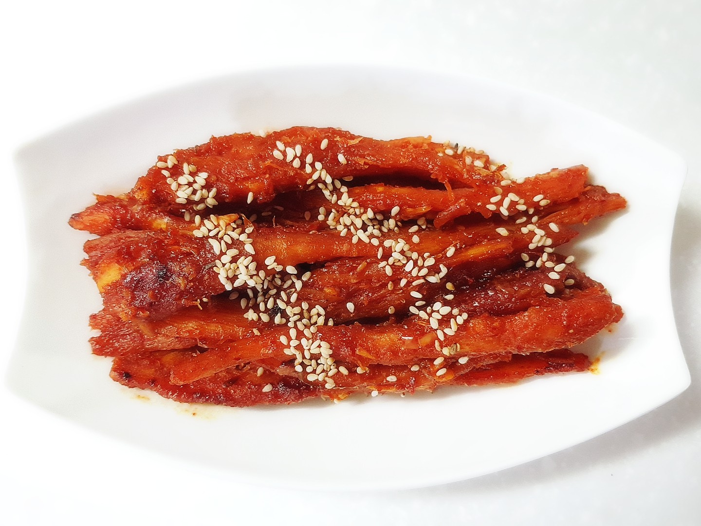 I made a delicious deodeok stir-fry using precious dried deodeok sent from Gangwon-do. Dried deodeok has a unique charm different from fresh deodeok! I carefully prepared it to be moist and well-seasoned, creating a high-quality side dish boasting deep flavor and chewy texture. It’s a real rice thief!