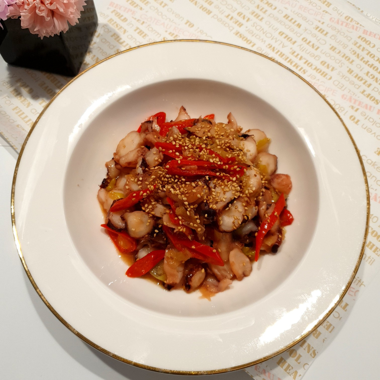 Continue to stir-fry over medium heat, allowing the flavors to meld together. Be careful not to overcook the octopus, as it can become tough. Stir-fry for about 3-4 minutes.