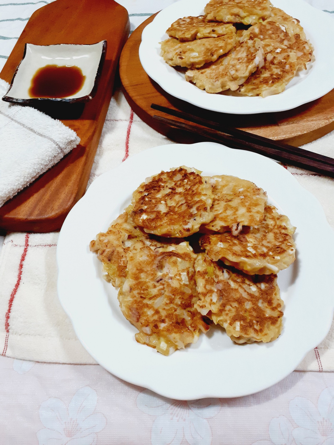 Fry the other side until golden brown. It’s important not to flip the pancakes too often to prevent them from breaking apart. Gently press down on the top surface with your spatula to ensure even cooking. Control the heat well as you fry. Briefly increase the heat right after flipping, then reduce it back to medium-low to ensure the inside is cooked through.