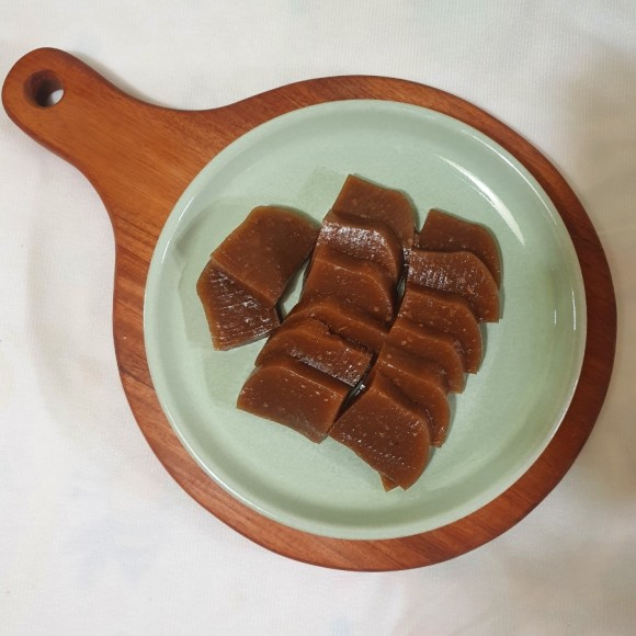 Cut the finished acorn jelly into bite-sized pieces. It’s delicious dipped in a sweet and savory soy sauce-based sauce, or a spicy chili powder sauce, and it’s also wonderful drizzled with just a little sesame oil. Enjoy your healthy and delicious homemade acorn jelly now!