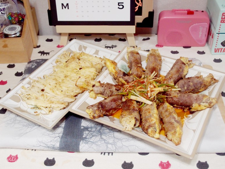 #BeefRecipe #EnokiMushroom #EasyCooking #AlcoholSnack #YukjeonRoll #ScallionSalad