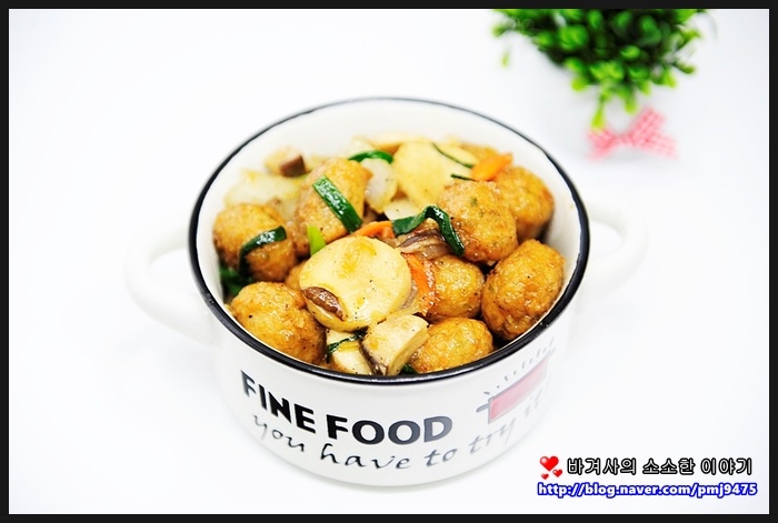 Heat 1 Tbsp of cooking oil in a pan over low heat. Add 1 Tbsp of minced garlic and stir-fry until fragrant, being careful not to burn the garlic. Once the aroma is released, add the fish cake balls, 1/2 cup of water, 3 Tbsp of soy sauce, and 1 Tbsp of oligosaccharide. Bring to a simmer over medium heat. As ‘Cookmaestro’ (a TV show) advised, don’t be afraid to add water when stir-frying fish cakes; it makes them wonderfully tender!