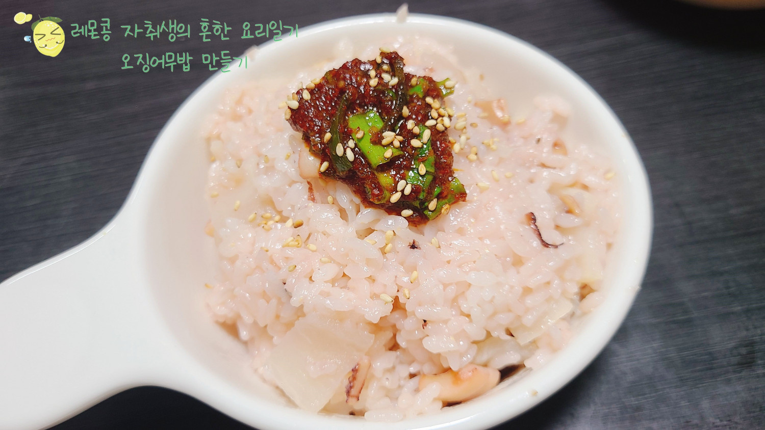 Serve the squid and radish rice in a bowl, then generously spoon the prepared seasoning sauce over the top. Adjust the sauce to your liking and mix everything together for a truly fantastic meal!