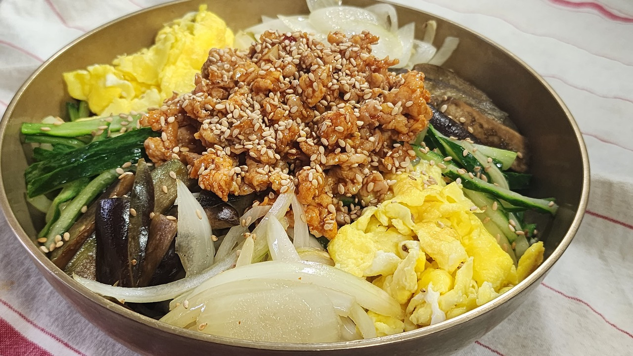 When you’re tired of everyday meals and your appetite is waning, a hearty one-bowl meal is the best! I’ve made a rice bowl by mixing ground chicken with vegetables I had at home.