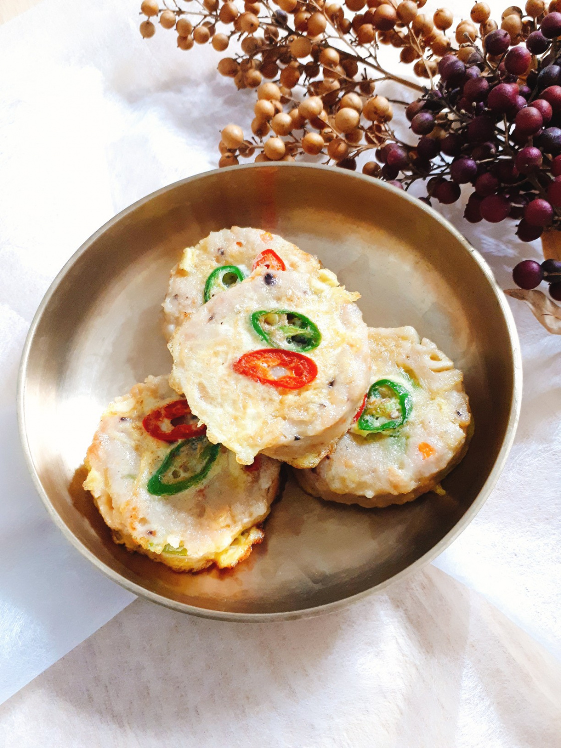 These colorful and beautifully pan-fried Dong-geu-rang-ttaeng are as delightful to look at as they are to eat. Just like the saying ‘pretty food tastes better,’ the vibrant colors of these patties will stimulate appetites, especially for children. They make an excellent side dish for lunchboxes or a festive addition to holiday meals.