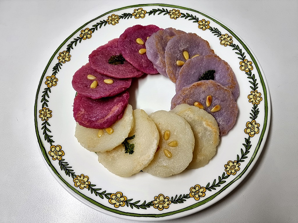 Your delicious pan-fried tri-color radish cakes are ready! They make a perfect warm snack for the winter season.