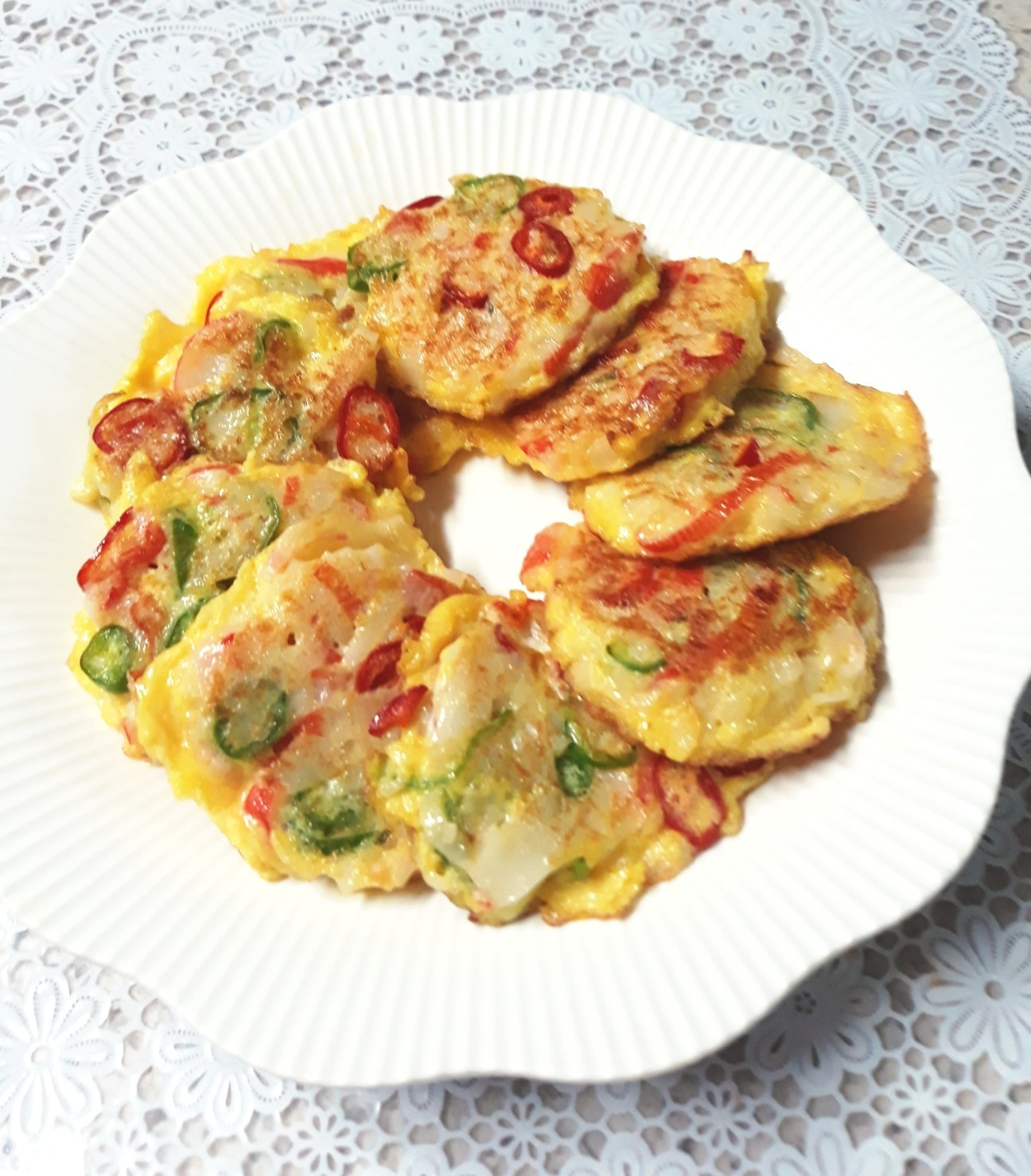 Arrange the perfectly cooked crab stick pancakes on a serving plate. They are best enjoyed warm! These are wonderful as a snack for kids, a satisfying dinner side dish, or a delightful appetizer to enjoy with a cold beverage.