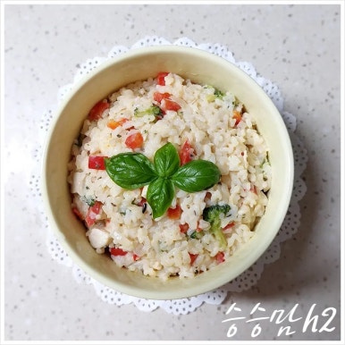 As the risotto reaches its perfect creamy texture, it’s time for the final touches. Just before turning off the heat, add 1 slice of processed cheese and stir until it melts smoothly. Finally, sprinkle in 1 tsp of dried basil for an aromatic finish and mix gently. Your delightful Chicken and Broccoli Cream Risotto is ready!