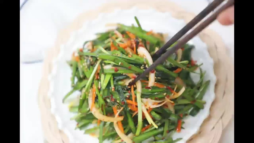The perfect antidote to a dull appetite! This chive salad is incredibly crisp and refreshing, thanks to being made right before serving. The vibrant chives combined with a zesty dressing create a delightful texture and taste that makes it an irresistible side dish.