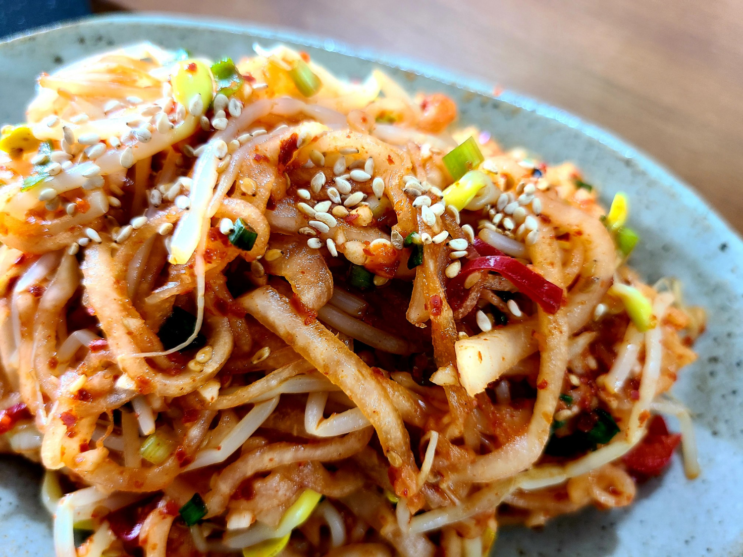 With vegetable prices being quite high, and with 겉절이 (fresh kimchi) not always needed, I decided to make some mu saengchae using radishes, which are relatively more affordable. To compensate for the blandness of plain radish, I mixed in bean sprouts for added texture and flavor. You can also check out the video recipe at https://youtu.be/q_FOcZ94o2c.