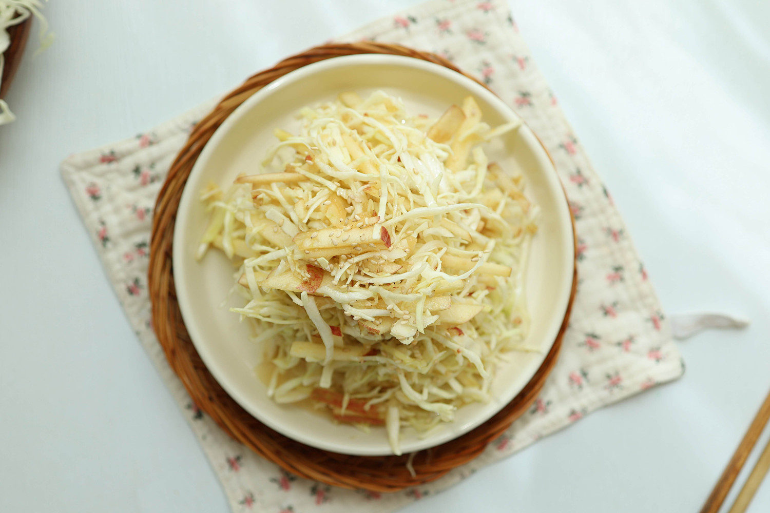 It can feel counterproductive to eat a salad for health, only to find it loaded with sugar! Sometimes you might even wonder, ‘Am I eating this to be healthy, or to eat sugar?’ While it takes a little extra effort, making your own dressing at home allows you to control the amount of sugar and create a more delicious and health-conscious dish! Enjoy the perfect balance of crunchy cabbage and refreshing apple in this salad, and complete your healthy meal with it!