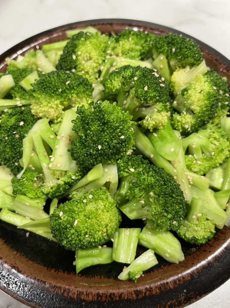 Add 1 tablespoon of perilla oil (or sesame oil) and 1 tablespoon of toasted sesame seeds. Gently toss the broccoli again to coat it evenly with the aromatic oil and seeds.