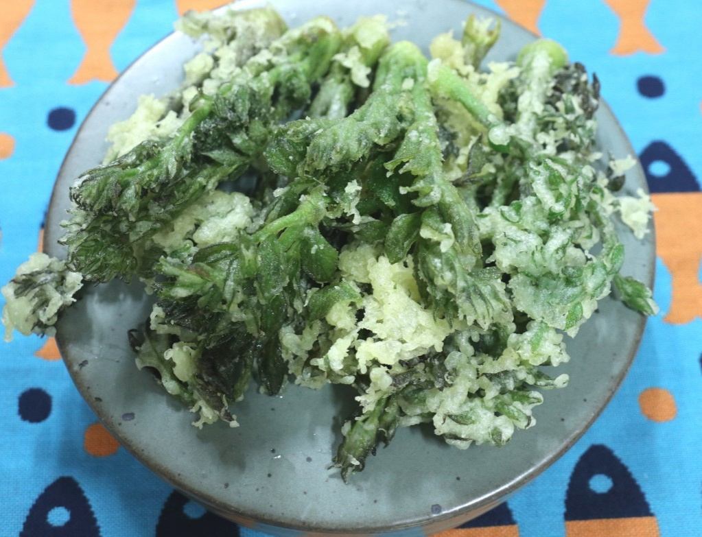After coating the aralia shoots, fully immerse them in the batter to ensure the coating adheres well. If you prefer a thinner coating, you can lightly dip them in the batter before frying.