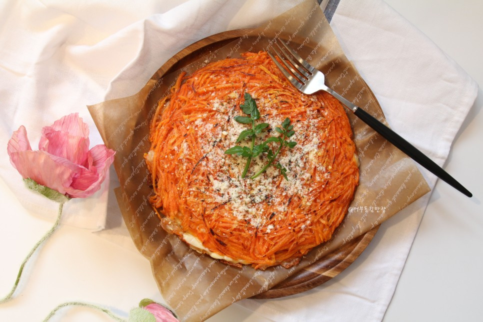 Today, I’ve made a crowd-pleasing ‘Carrot Cheese Pancake’ using sweet carrots. With its crispy exterior and chewy interior, enhanced by the rich flavors of cheese, bacon, and garlic, it’s a perfect companion for wine or beer, and a guaranteed hit as a snack for children. Here’s a super simple carrot pizza pancake recipe you can make at home in no time!