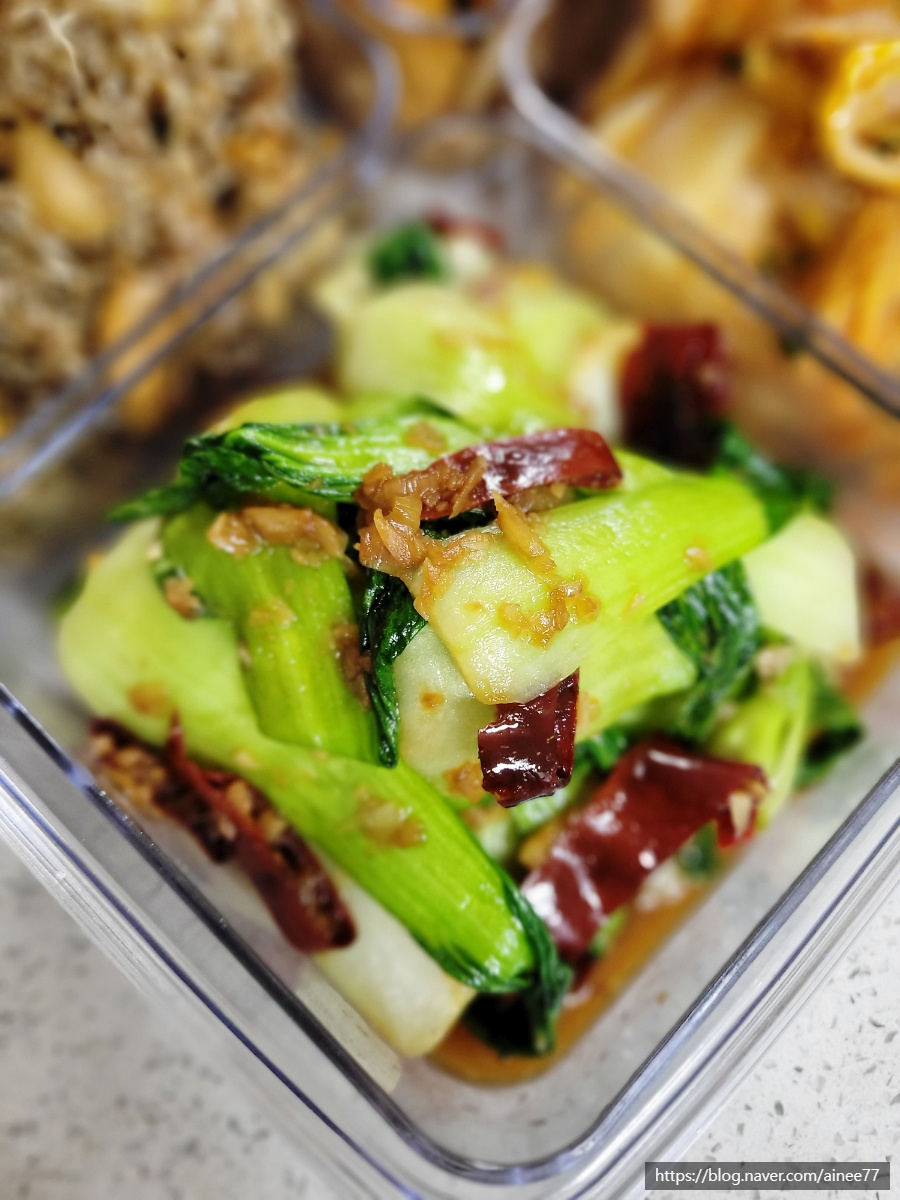 Once fragrant, add the washed and drained bok choy to the pan. Then, pour 1 tablespoon of oyster sauce evenly over the top. Turn the heat up to high and stir-fry quickly, without letting the bok choy become soggy, to preserve its crispiness. Stir-fry rapidly over high heat for about 1-2 minutes.